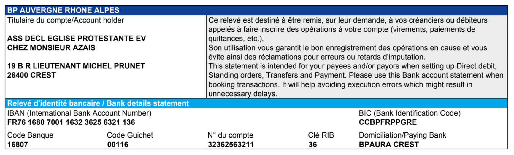 Vous souhaitez soutenir l’Eglise Protestante Evangélique de Crest par un don ?